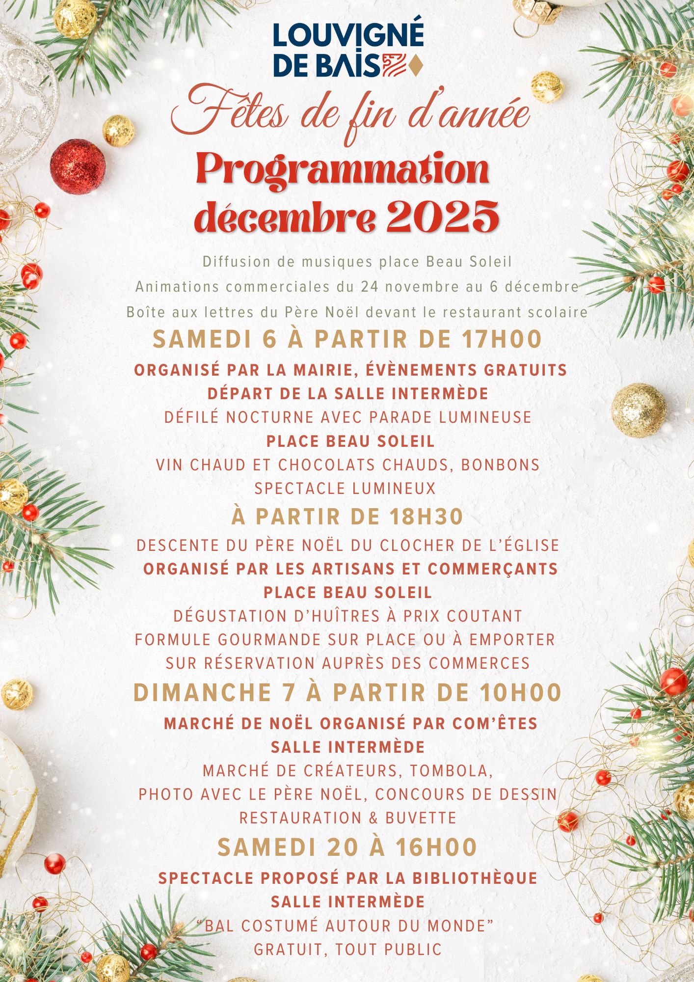 À partir de 18h30 : descente du père Noël du Clocher de l’église