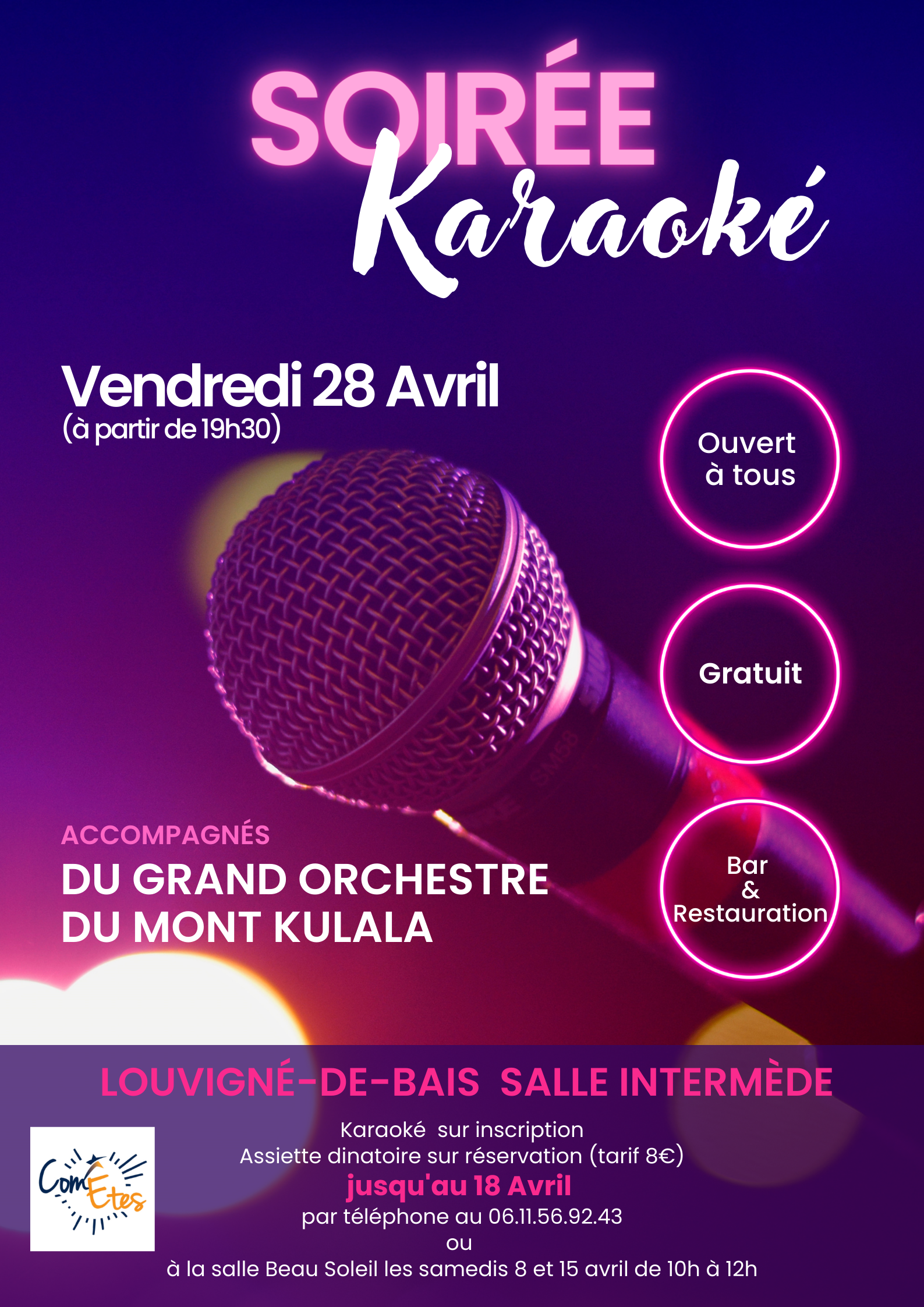 L’association Com’Êtes organise une soirée karaoké le vendredi 28 avril à la salle Intermède à partir de 19h30.
