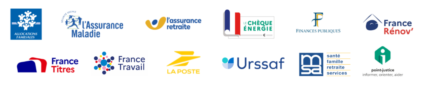 Dans chaque maison France services, vous avez accès aux 12 partenaires nationaux : Allocations familiales, Assurance retraite, Assurance Maladie, Chèque énergie, Finances publiques, France Titres, France Travail, France Rénov’, La Poste, Urssaf, MSA, et point-justice.